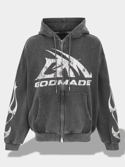 גוד מייד סווטשירט קפוצ'ון צבע אפור LOGO ZIP HOODIE
