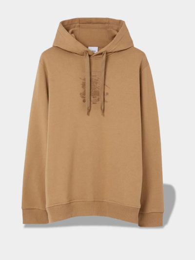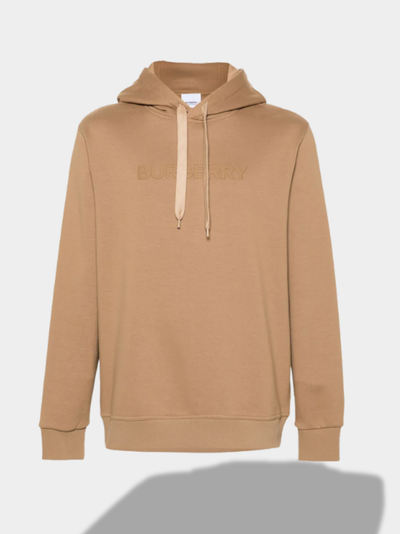 ברברי סווטשירט קפוצ'ון צבע חום LOGO-EMBOSSED