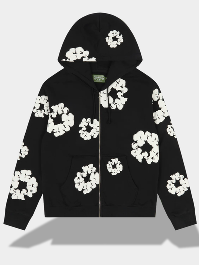 דנימ טירס סווטשירט קפוצ'ון צבע שחור COTTON WREATH
