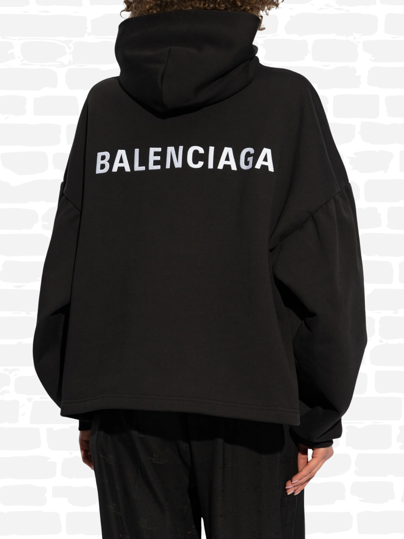 בלנסיאגה סווטשירט צבע שחור LOGO-PRINT HOODIE