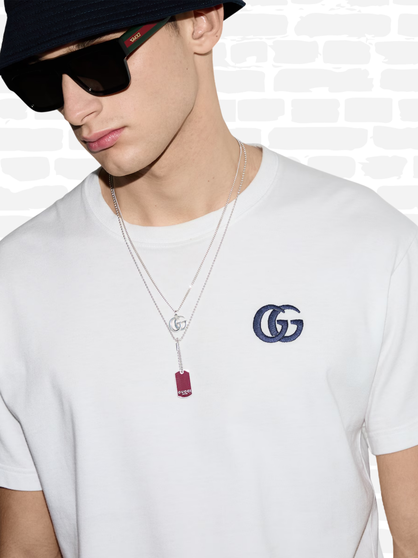 גוצ'י טי שירט צבע לבן GG EMBROIDERED LOGO