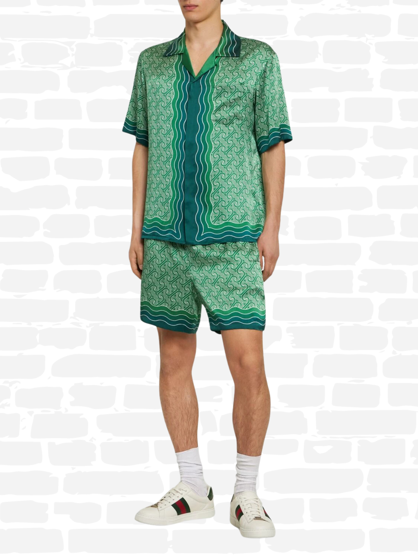 קזבלנקה שורט צבע ירוק COLUMN SILK SHORTS