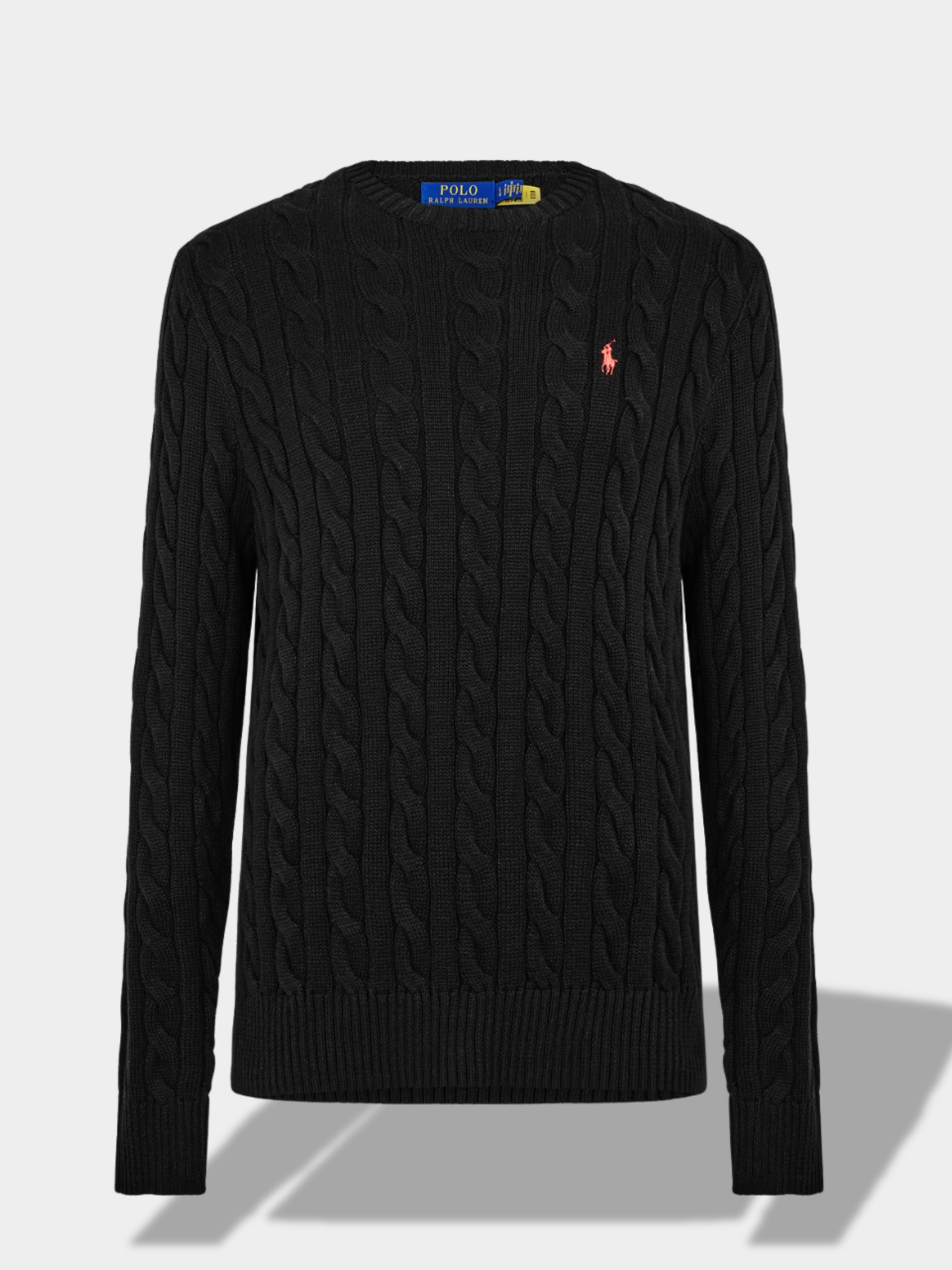 פולו ראלף לורן סריג צבע שחור POLO CABLE KNIT JUMPER