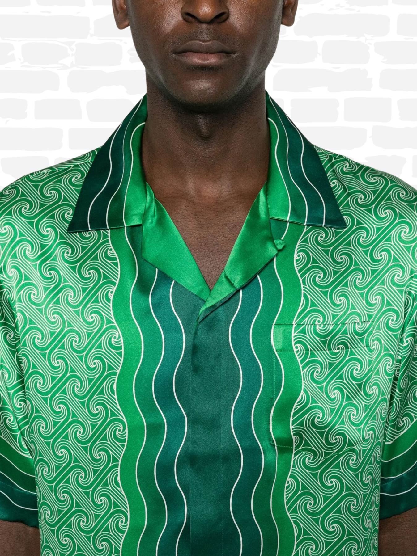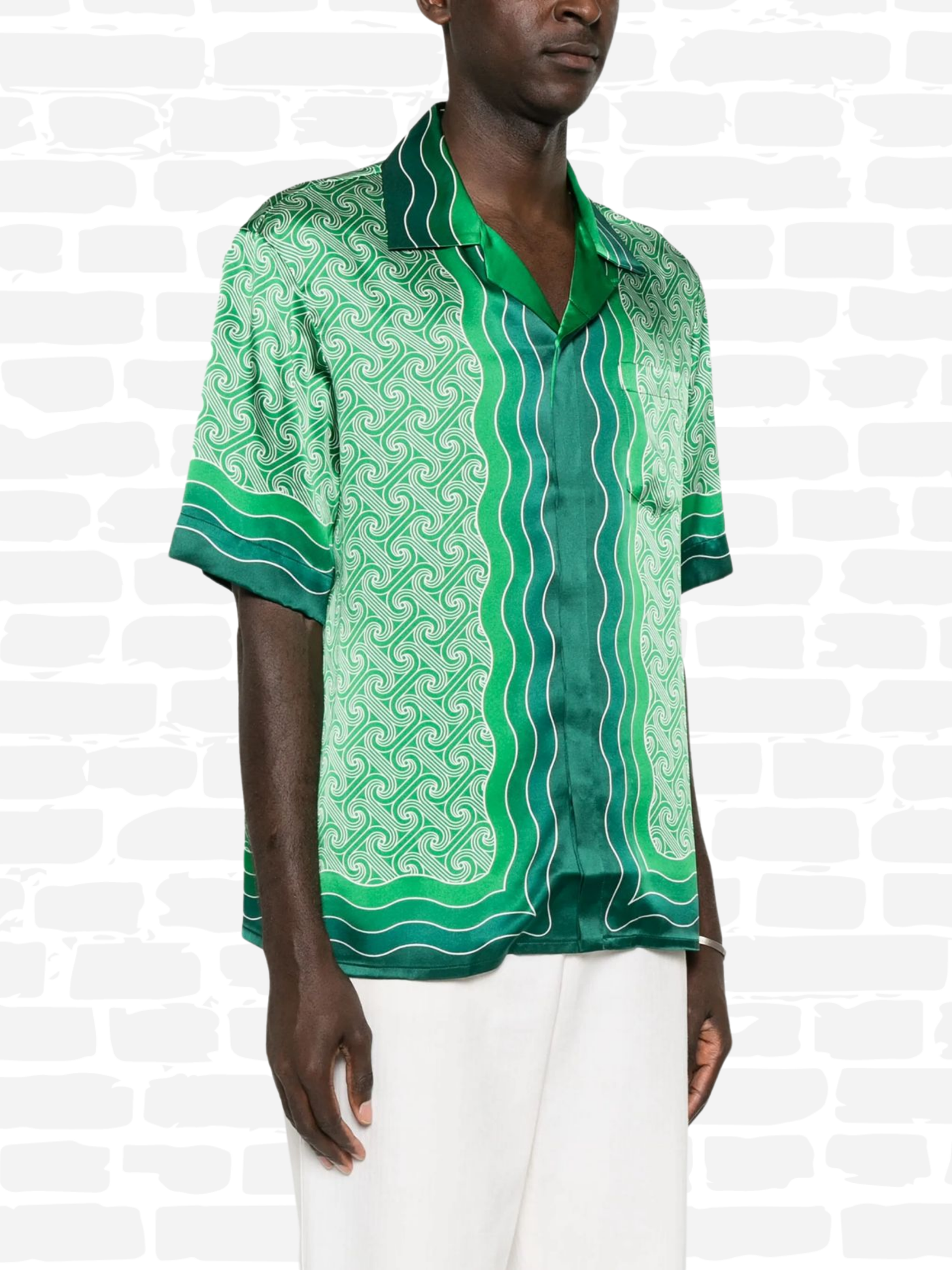 קזבלנקה שירט צבע ירוק COLUMN SILK SHIRT