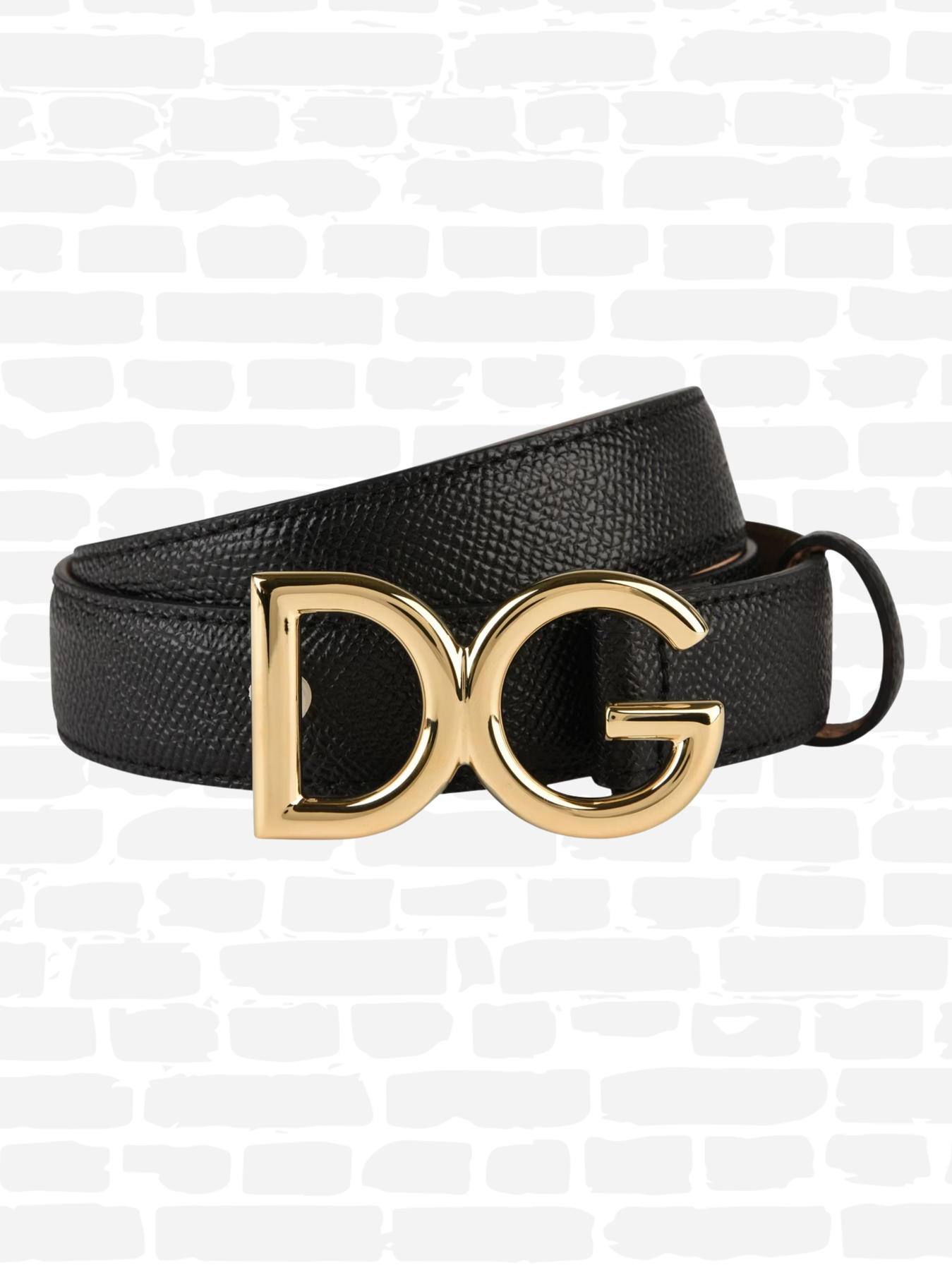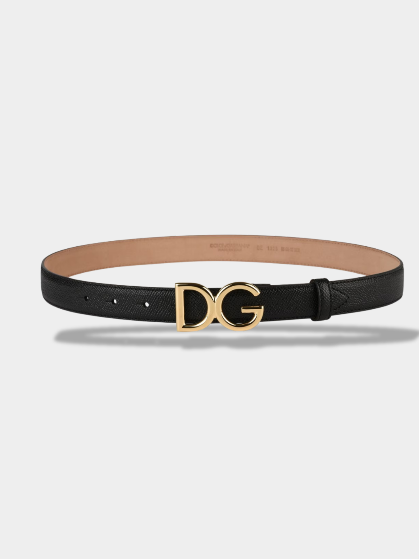 Ceinture en cuir de couleur noire INTERLOCK LOGO BUCKLE BELT